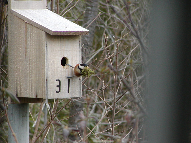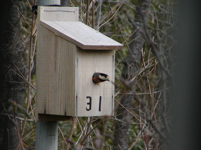 巣箱に来たヤマガラ 撮影:西村和彦